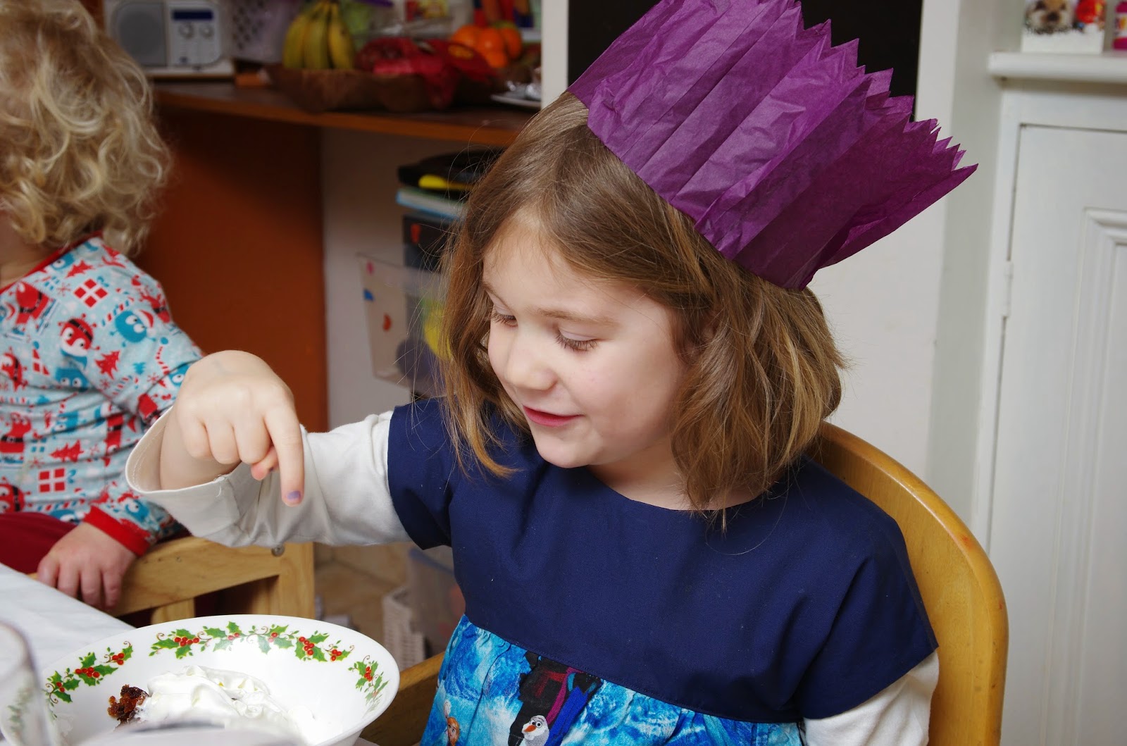 Traditional: looking for presents at the bottom of a stocking. Both children were heavily into presents this year - actually, Marisca was remarkably even tempered about it but Tom was mad keen for presents. His, anyone else's, he didn't really mind.